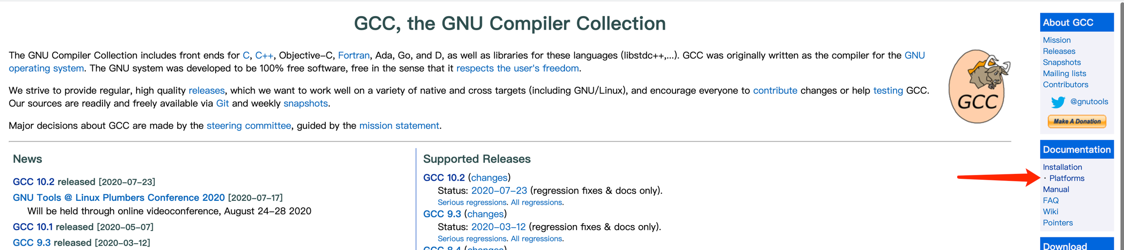 后来发现这个玩意就在gcc主页:https://gcc.gnu.org/右侧的Platforms中: